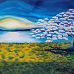 Coucher de soleil et arbre rose